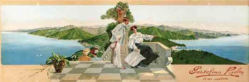 Title: PORTOFINO KULM - Author: ZANOLIO - Litograph - 1905 - 32x95 - Quality: A- - Originally assembled on cardboard