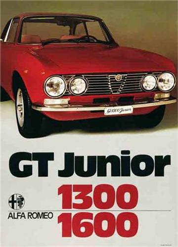 Title: ALFA ROMEO GT JUNIOR 1300 - Author: ANONYMOUS - Offset - 1965 ca - 48,5x68 a 95x68 - Quality: A-/B+ - Backed on linen. Lot of 2 posters