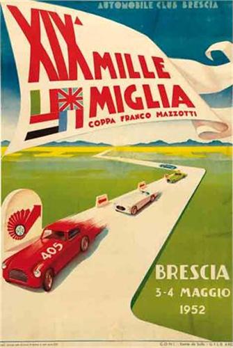 Title: XIX MILLE MIGLIA COPPA FRANCO MAZZOTTI - Author: ANONYMOUS - Litograph - 1952 - 96x64 - Quality: B- - Backed on linen