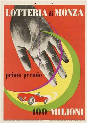 Title: LOTTERIA DI MONZA - Author: ERBERTO CARBONI - Offset on cardboard - 1957 - 34,5x25 - Quality: B+ -