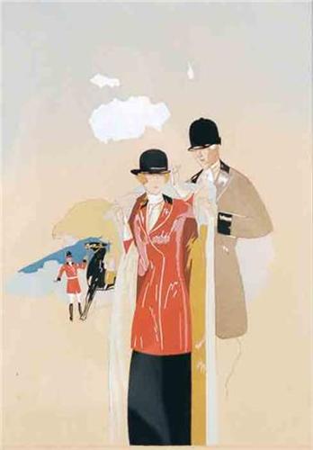 Title: (LA MODA E L'EQUITAZIONE) - Author: ANONYMOUS - Litograph hand-colored - 1930 ca - 35x25 - Quality: A- - Framed