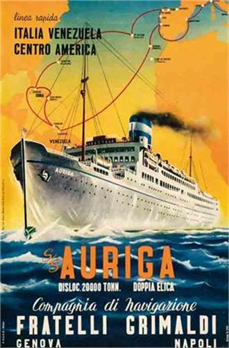 Title: AURIGA, FRATELLI GRIMALDI - Author: ANONYMOUS - Offset - 1954 - 34,5x24,5 - Quality: A - On thin cardboard