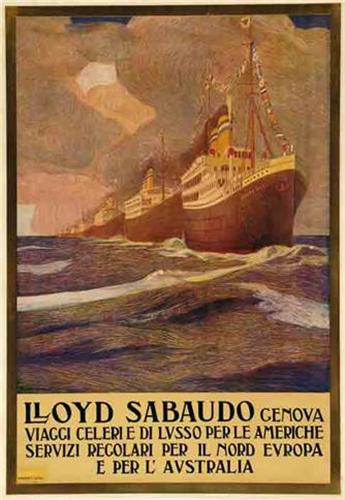 Title: LLOYD SABAUDO GENOVA - Author: ROSSIGNOLI - Litograph - 1935 ca - 97x68 - Quality: B+ - Backed on linen