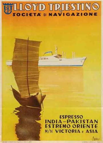Title: LLOYD TRIESTINO, ESPRESSO INDIA-PAKISTAN ESTREMO ORIENTE - Author: SAULI - Offset - 1953 - 88x63 - Quality: B -