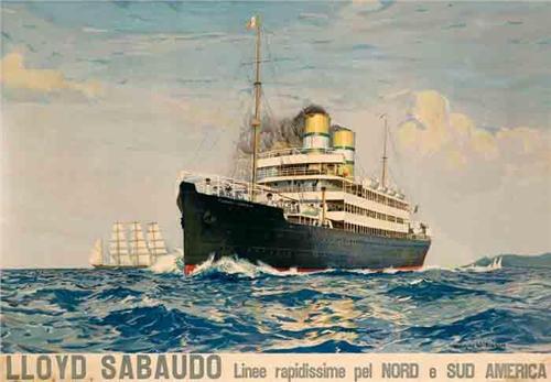 Title: LLOYD SABAUDO - Author: NORMAN WILKINSON - Litograph - 1920 ca - 69,5x100,5 - Quality: A - On cardboard
