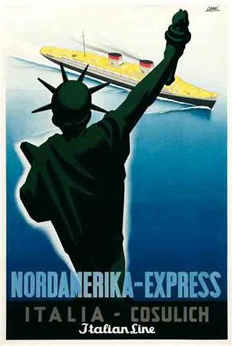 Title: NORDAMERIKA - EXPRESS - Author: RENATO CENNI - Litograph - 1950 ca - 94x63 - Quality: B+ - Backed on linen. Upper edge restored