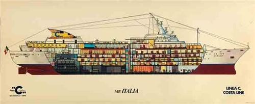 Title: LINEA C COSTA LINE - Author: ANONYMOUS - Offset - 1960 ca - 56x135 cad. - Quality: A- - Lot of 2 posters. Originally on clear plastic and assembled on tin sticks