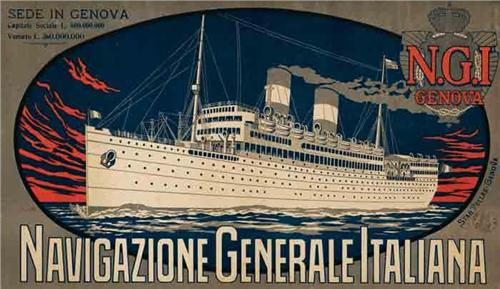 Title: NAVIGAZIONE GENERALE ITALIANA - Author: ANONIMA - Litograph - 1925 ca - 40x68 - Quality: A - Backed on linen
