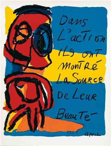 Title: DANS L'ACTION ILS ONT MONTRE LA SOURCE DE LEUR BEAUTE' - Author: KAREL APPEL - Litograph - 1968 - 78,5x60 - Quality: A -