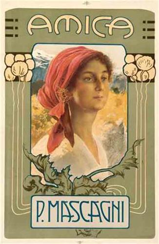 Title: AMICA (P.MASCAGNI) - Author: ANONYMOUS - Litograph - 1900 ca - 71x46 - Quality: A- - Backed on linen