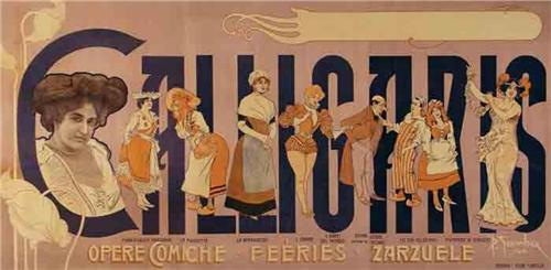Title: CALLIGARIS, OPERE COMICHE - Author: P.GAMBA - Litograph - 1900 ca - 100,5x205 - Quality: A- - Backed on linen