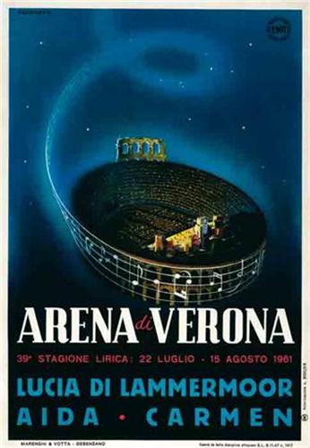 Title: ARENA DI VERONA - Author: RUZZENENTE - Offset - 1961 - 100x70 - Quality: B+ - Backed on linen
