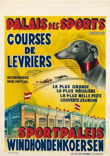 Title: COURSES DE LEVRIERS - Author: ANONYMOUS - Litograph - 1950 - 88x63 - Quality: A- - Framed