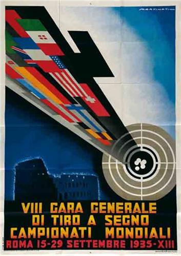 Title: VIII GARA GENERALE DI TIRO A SEGNO CAMPIONATI MONDIALI - Author: LUIGI MARTINATI - Litograph - 1935 - 138,5x99,5 - Quality: B+ -
