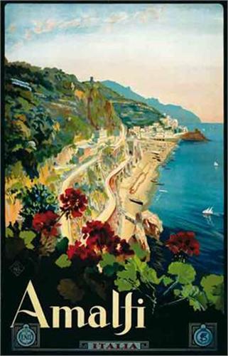 Title: AMALFI - Author: MARIO BORGONI - Litograph - 1920 ca - 100,5x64,5 - Quality: A - Diffused restores in the lower part