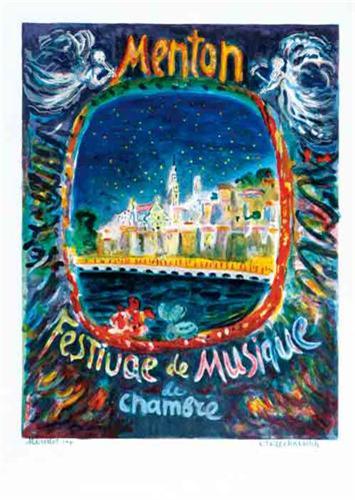 Title: MENTON - FESTIVAL DE MUSIQUE - Author: C.TERCHKOVITCH - Litograph - 1957 - 77x56 - Quality: A -