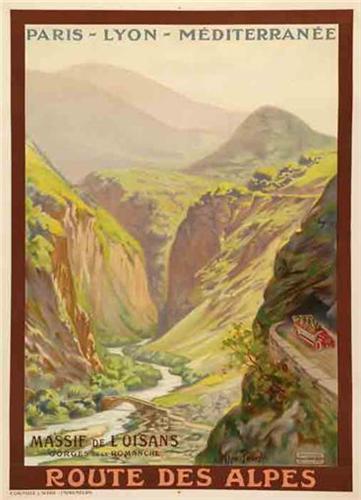 Title: PLM ROUTE DES ALPES - Author: RENE PEAN - Litograph - 1910 ca - 107,5x78,5 - Quality: A - Backed on linen