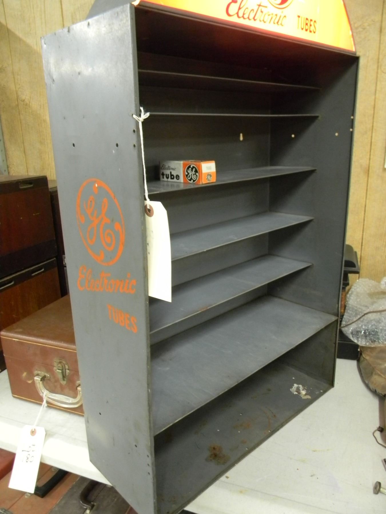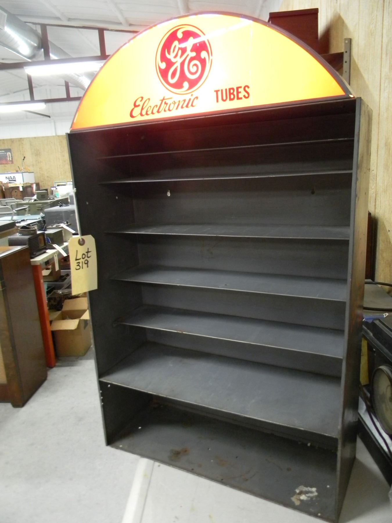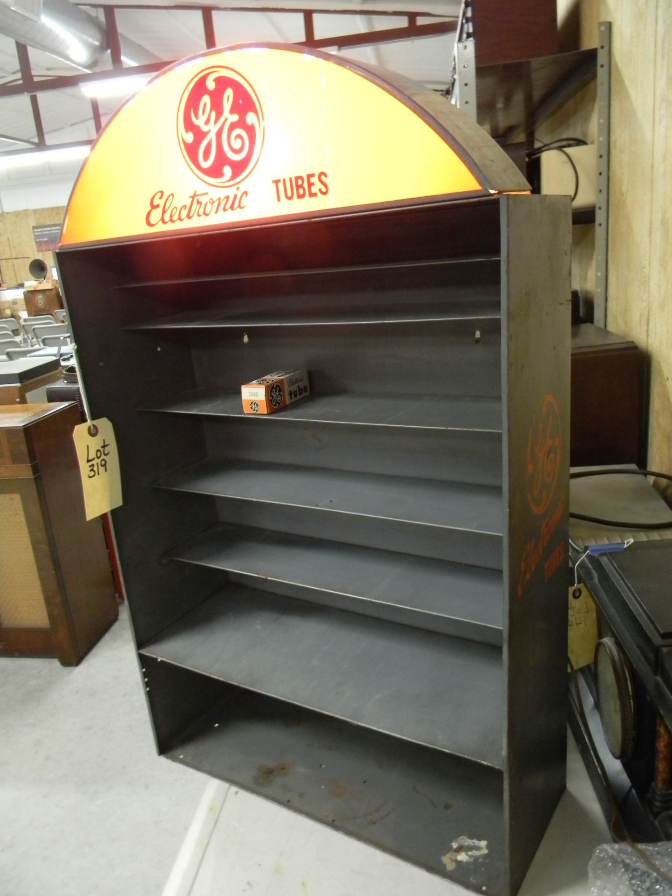 General Electric lighted tube display. 34" tall, 21" wide, 8" deep. Glass is cracked, but repaired. Works