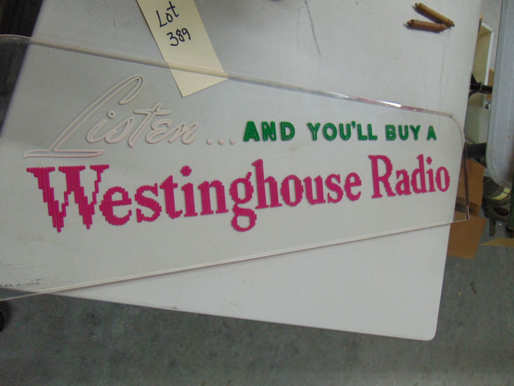 Colorful plexiglass Westinghouse Radio advertising sign; nice