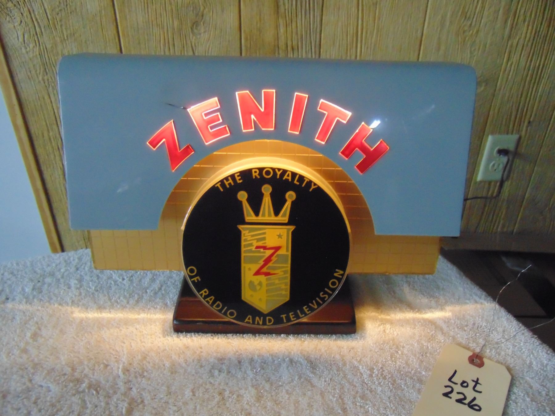 Zenith dealer advertising lighted sign; works; slight imperfection above the letter E in Zenith; nice