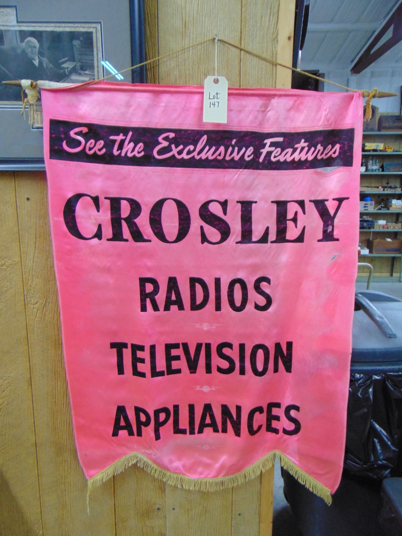 Crosley banner; approx 3' X 5' ; some wear on the banner