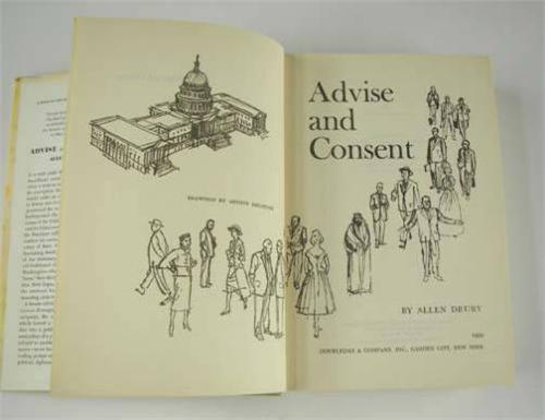 Advise and Consent, by Allen Drury, published by Doubleday and Company, Inc., Garden City, New York, 1959, from the Estate of Charles Ragland Bunnell, Condition Fair