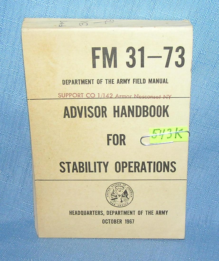 Advisor handbook for stability Dept. of the Army field manuel est. value $35.00-$40.00