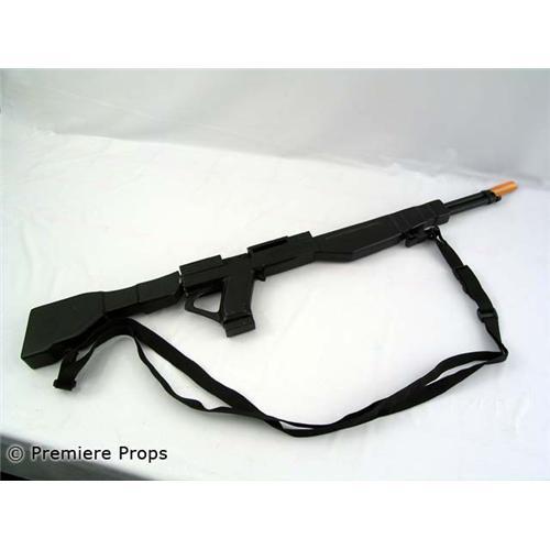 AEON FLUX - The Perfect World Meets The Perfect Assassin. Direct from the set of the sci-fi thriller, this is a screenused guard's black rifle. This item measures approximately 38" x 6" x 2" and the back piece is broken off but it's fixable. This is a prop and cannot be made to fire in any way. This item is over sized and requires additional shipping. Please contact us before bidding. Don't hesitate to add this exclusive prop to your movie memorabilia collection today! (AF3036)
