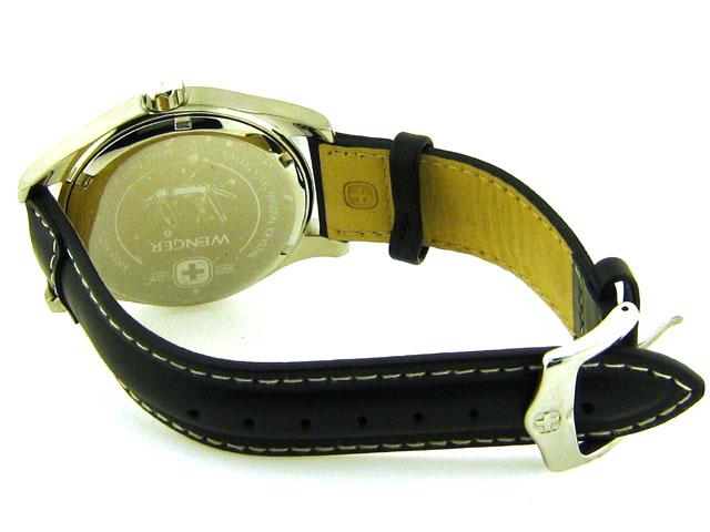 This is a Aerograph Vintage Men's Watch with Black and White Dial from Wenger with the following features: 42 mm(Case diameter); Swiss quartz movement; Stainless steel case material; Brushed Case finish; Screw-on case back; Seconds sub-dial; Luminous hands, numerals and markers; Regular crown; Date display; Leather strap with metal buckle with Wenger logo; 21 mm lug width and water resistant.