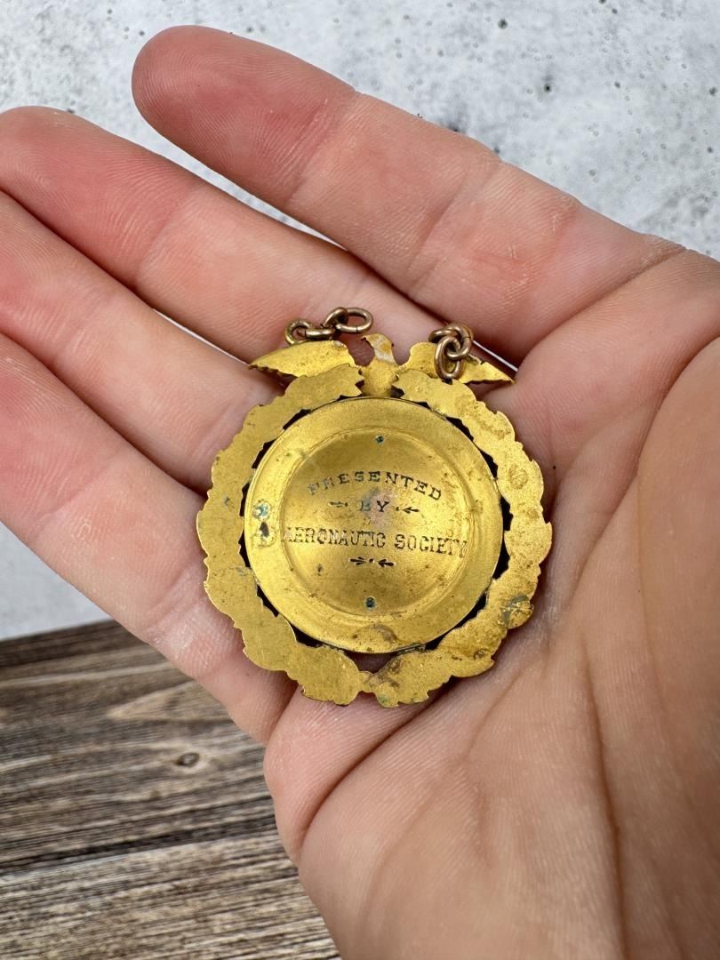 Stunning and Rare. Medal presented by Aeronautic Society. Features a Balloon with Basket on the Front. 2" by 1 1/2".