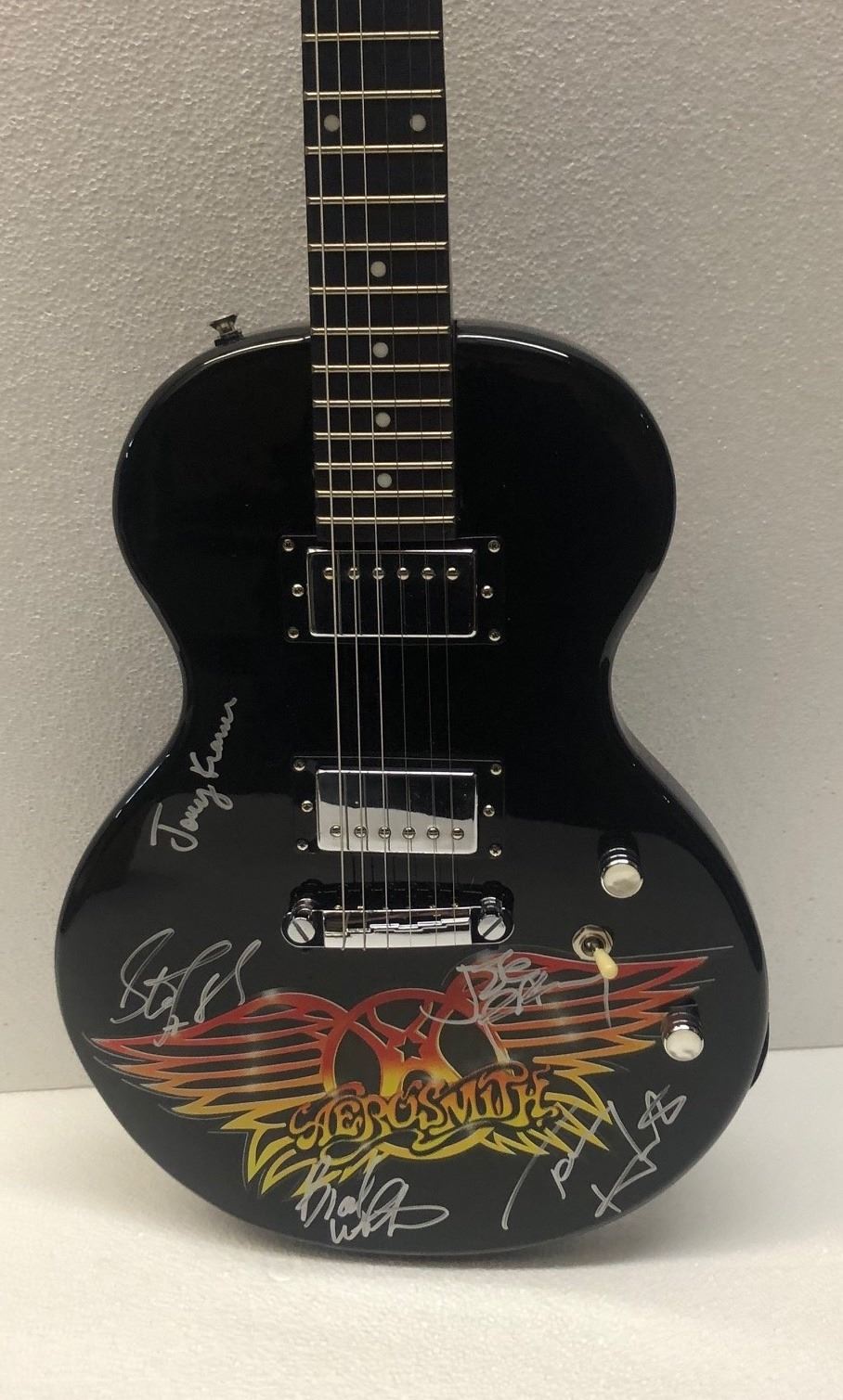 Signed by Steven Tyler, Joe Perry, Brad Whitford, Tom Hamilton, and Joey Kramer