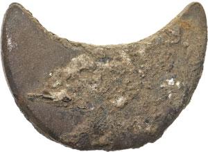 Repubblica Romana. Aes formatum. Elemento a forma di crescente. Etruria, VI-IV secolo a.C. AE. g. 30.25 mm. 40.00 RR. SPL. Molto raro e affascinante. Intatto.