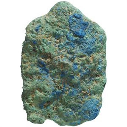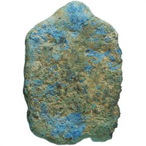 Repubblica Romana. Aes formatum. Etruria, VII secolo a.C. Panetto pentagonale, ca. 10.5 x 7 cm. gr. 429.50 RRR. AE. SPL. Il panetto presenta una superficie convessa spugnosa e irregolare da probabile colatura entro forma grossolanamente scavata nel terreno o su pietra tenera. Il nostro esemplare presenta un lato (lungo) di frammentazione: quindi probabile che simili pani venissero fusi in multiplo e successivamente divisi al bisogno, in corrispondenza delle incisure d'invito. Bellissima patina verde smeraldo, con chiazze azzurre.