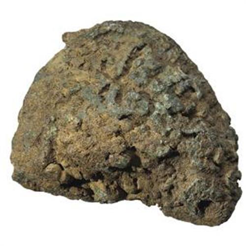Aes formatum. Italia centrale (Etruria?), VIII-IV sec. a.C.. Frammento di focaccia. Cfr. Garrucci I, 2. gr. 426.60 RR. AE. La superficie convessa spugnosa e cerebriforme caratteristica dei pani fusi entro buche praticate nel terreno.