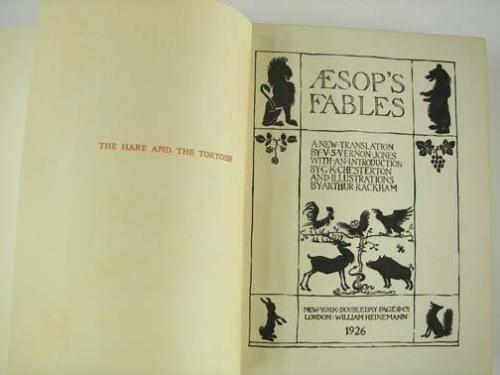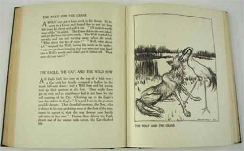 Aesop's Fables, a new translation by V.S. Vernon Jones, illustrations by Arthur Rackham, published by Doubleday Page and Co., New York, 1926, from the Estate of Charles Raglund Bunnell, Condition: Fair