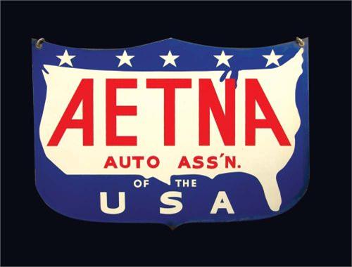 Aetna Auto Association of USA Porcelain Sign, die cut, two sided. Excellent condition. 20 X 14 inches.