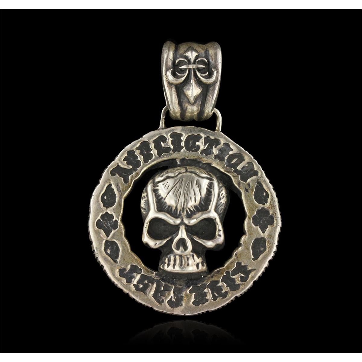 One Sterling Silver Affliction Live Fast skull pendant without chain weighing 43.5 grams.