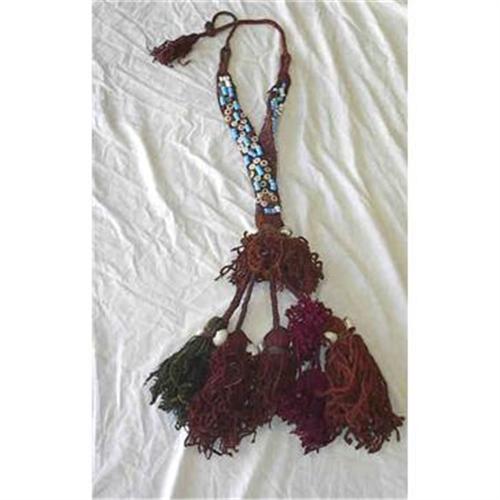 reserve is much lower...... This is woven Camel kerevat or band from Northern Afghanistan made by Turkomans living in that area of Afghansitan.... made of 2 x woven wool bands with bushy wool tassels....Both band are woven using wool and covered with old fabric decorated with mainly beads with a few large shells...Tassels are very bushy made of wool, tied with narrow embroidered jajim bands....cc late 1960's in exc. condition...Length of each band without the tassels is 15" long, 1.5" wide, tassels are 15" long....Have more pics to see each part of this Kerevat...A beautiful piece to collect....SHI to Canada $15, to USA $15, International $20.00...Combined shipping available...... please email if interested...Any Q email us.