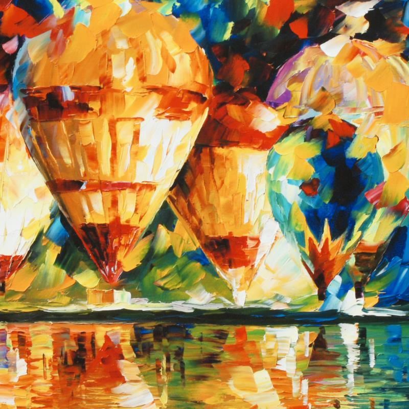 Leonid Afremov's (1955-2019) masterful use of color and texture make his paintings unique collectibles that are sure to brighten any wall. "Balloon Show" is a limited edition giclee on canvas. The piece is numbered and bears the artist's authorized signature. This piece comes gallery wrapped. Includes Letter of Authenticity. Measures approx. 24" x 18" (image). This item requires special handling and may have a longer than usual turnaround.