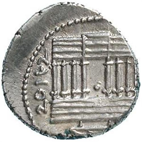 Greek Coins. Africa. Numidia. Giuba I (60-46 a.C.). Denarius. D/ REX IVBA. Busto diademato e corazzato a destra, con scettro sulla spalla. R/ Facciata di tempio a otto colonne. Legenda punica. M?ller III, 42,50. gr. 3.81 AG. qFDC. Un ritratto di Giuba I di qualit eccezionale.