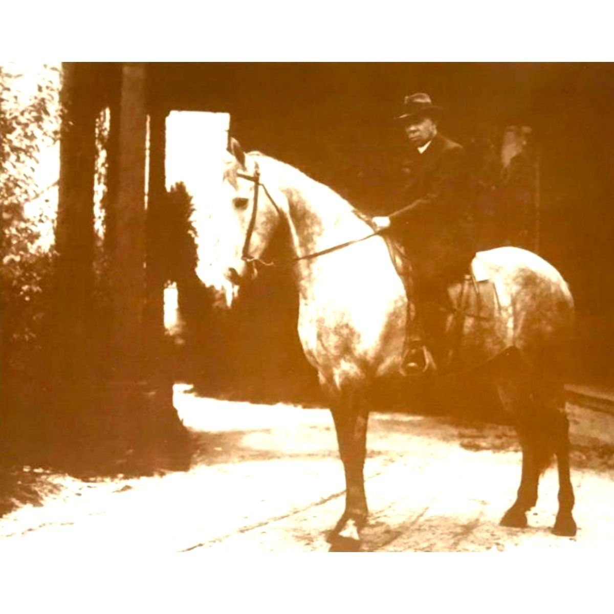 African American History, Booker T Washington ( famous 19th Century educator & founder of The Tuskegee Institute )Â on horseback, sepia tone photo print. Created in the early 1990's for The American Heritage Galleries. Printed on heavy cardstock. 8" X 10" in original packaging.Â