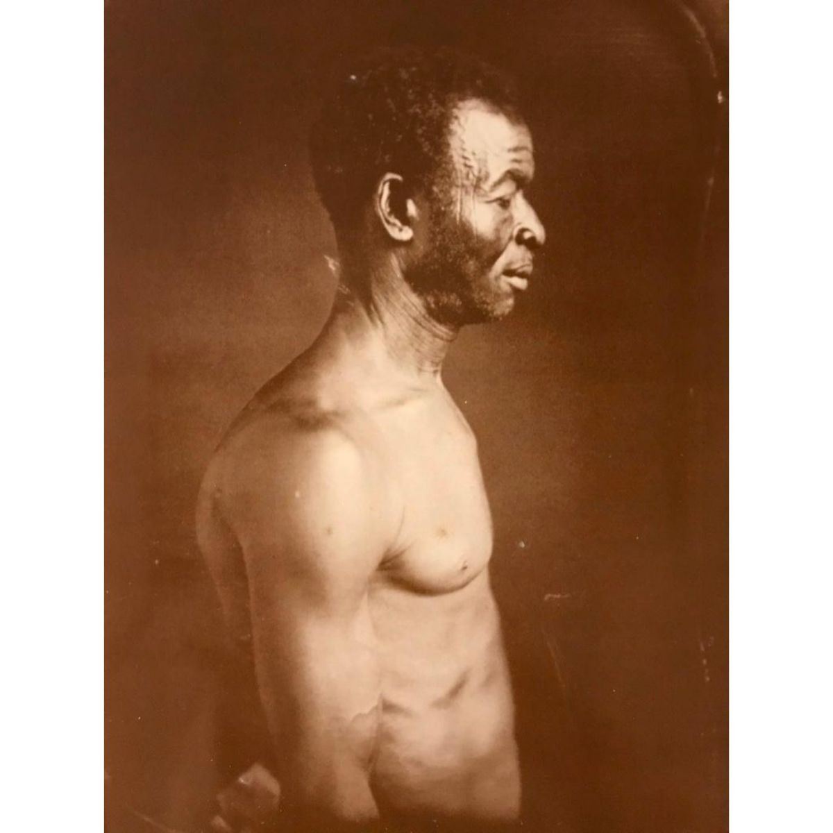 African American History, 19th Century slavery subject. Profile of a Guinea slave from the Taylor Plantation in Columbia, South Carolina, 1850. Created for The American Heritage Galleries in the early 1990's. 8" X 10" printed on cardstock,with 11" x14 double mats & original packaging.Â
