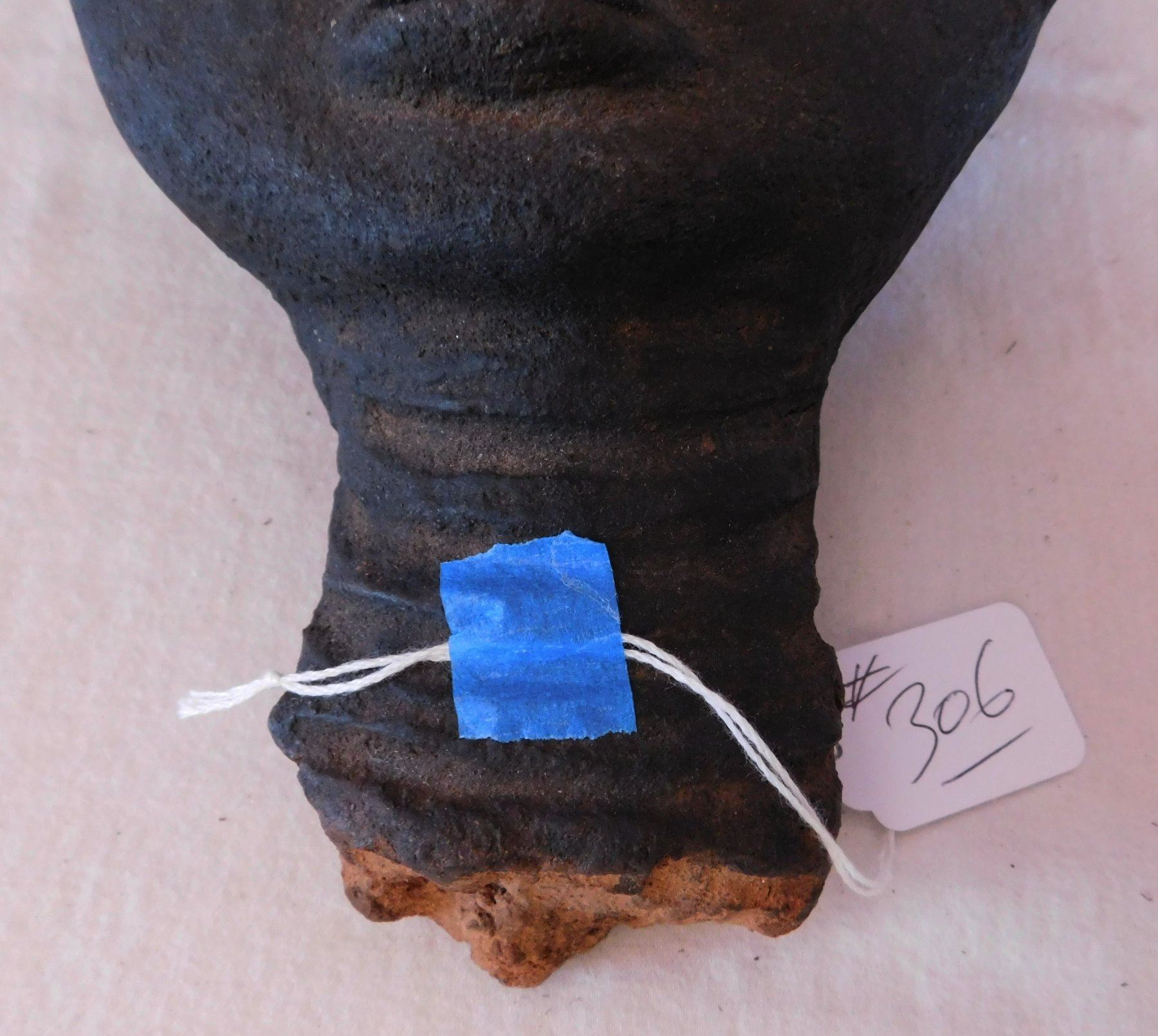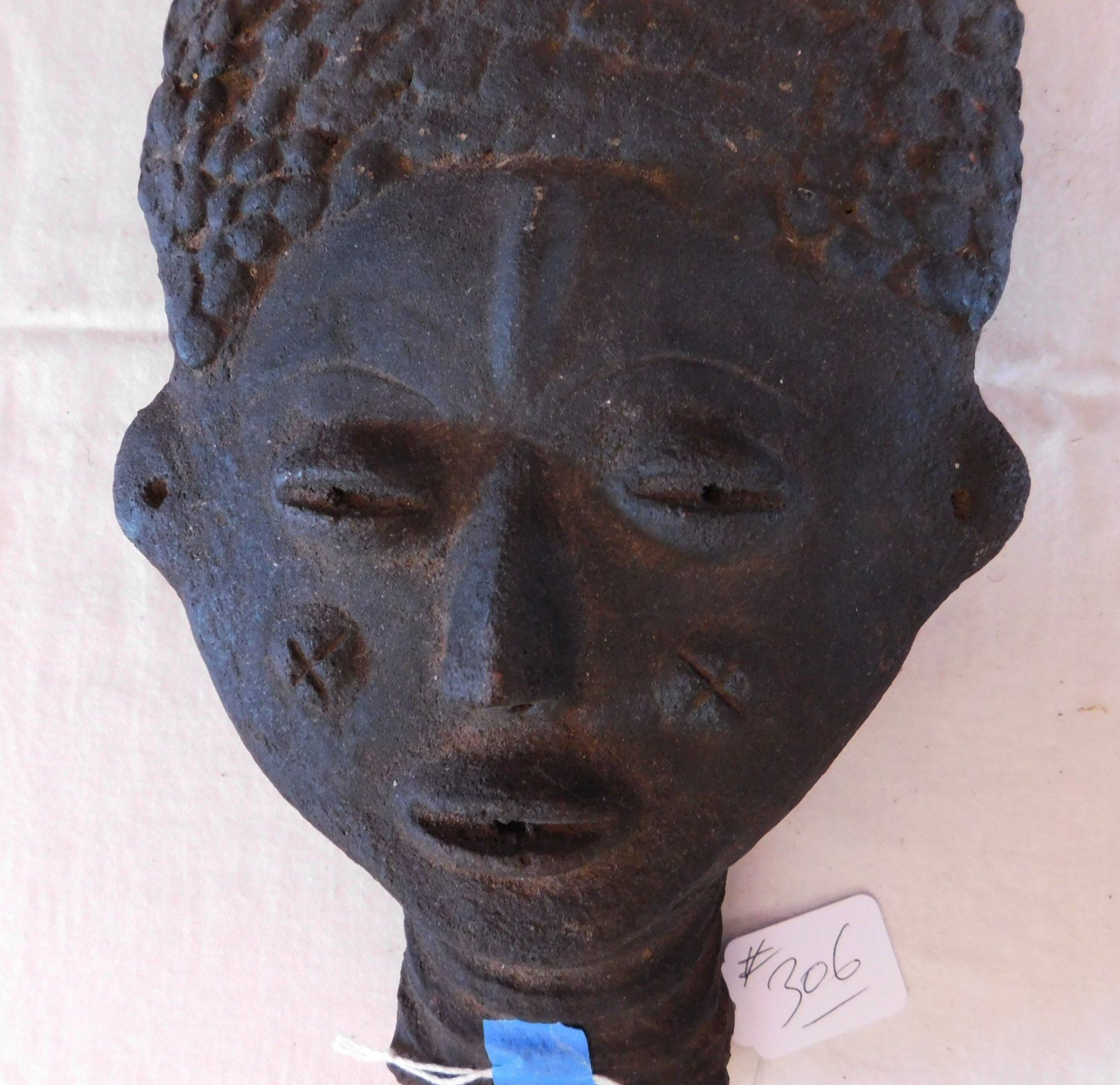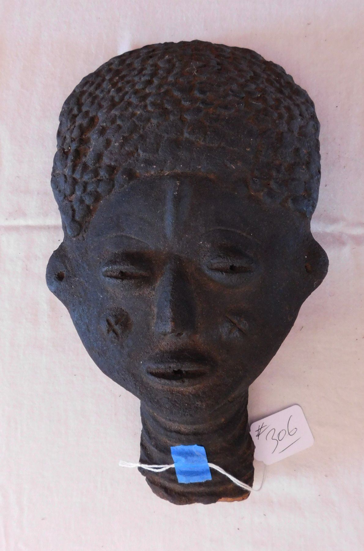 African Ashanti Clay Funerary Head, early 19th century. Made of clay and paint, the item measures 6.5" x 12" x 3". Ashanti, Ghana. Condition: Good patina, head has been detached, see images. Shipping: $32.00 w/insurance and siganture, due to size and weight.