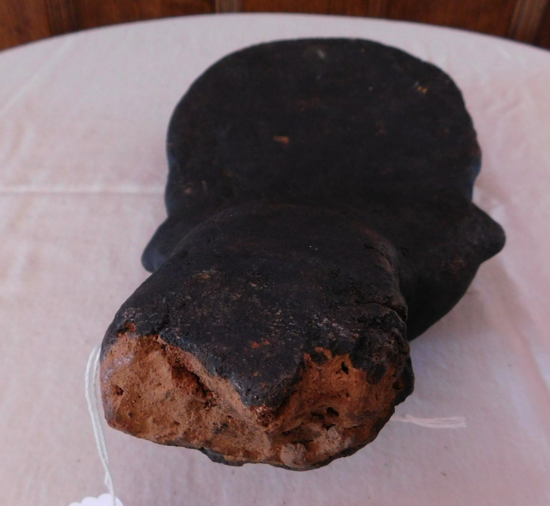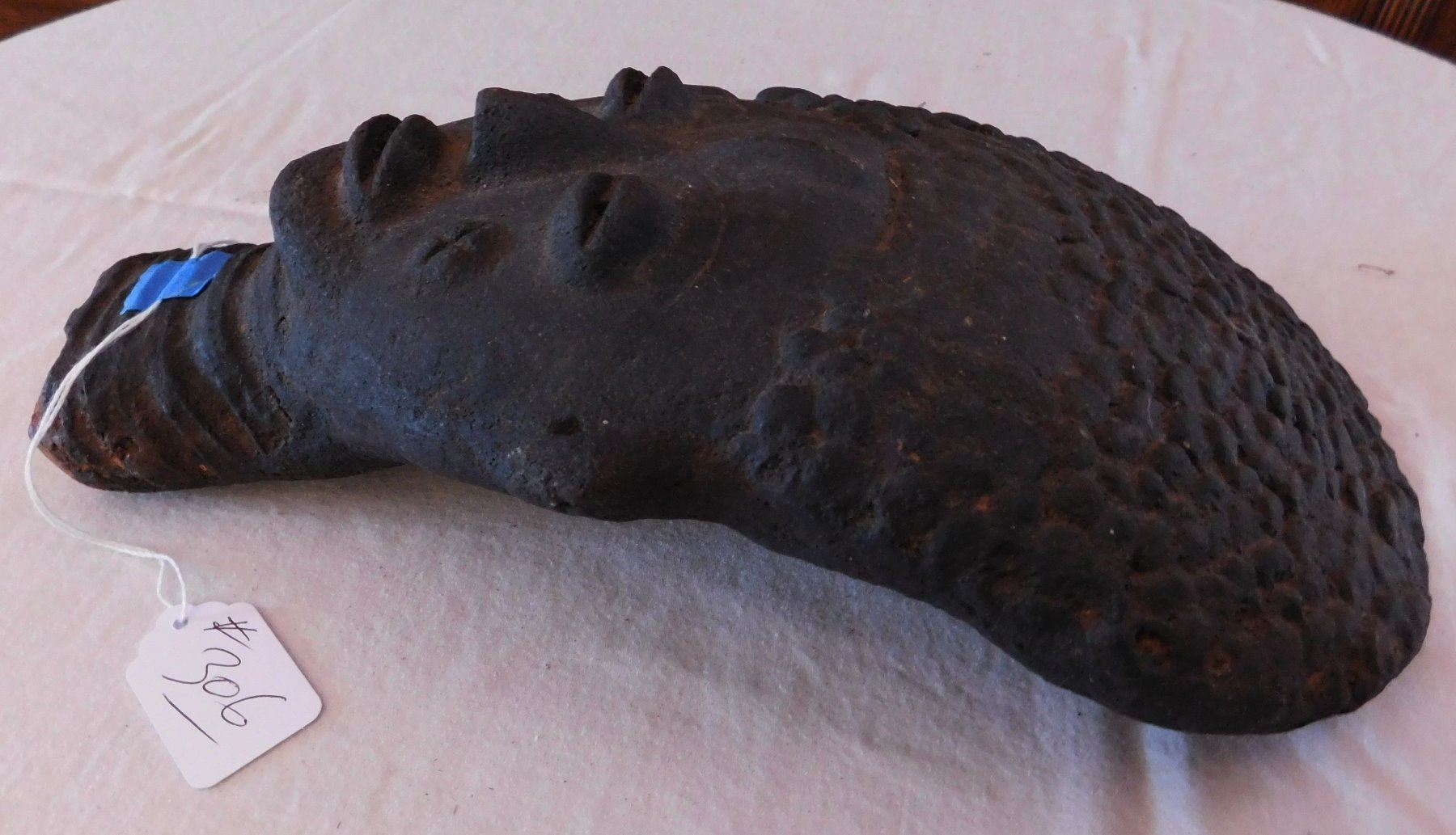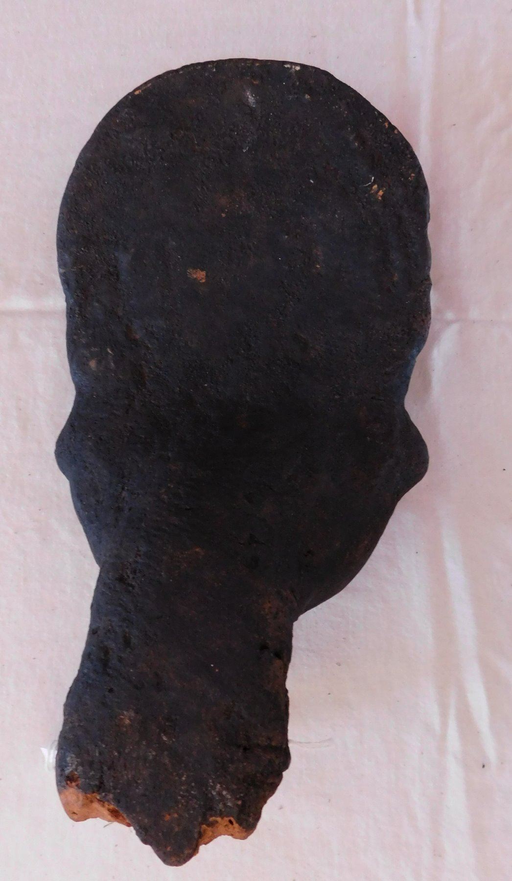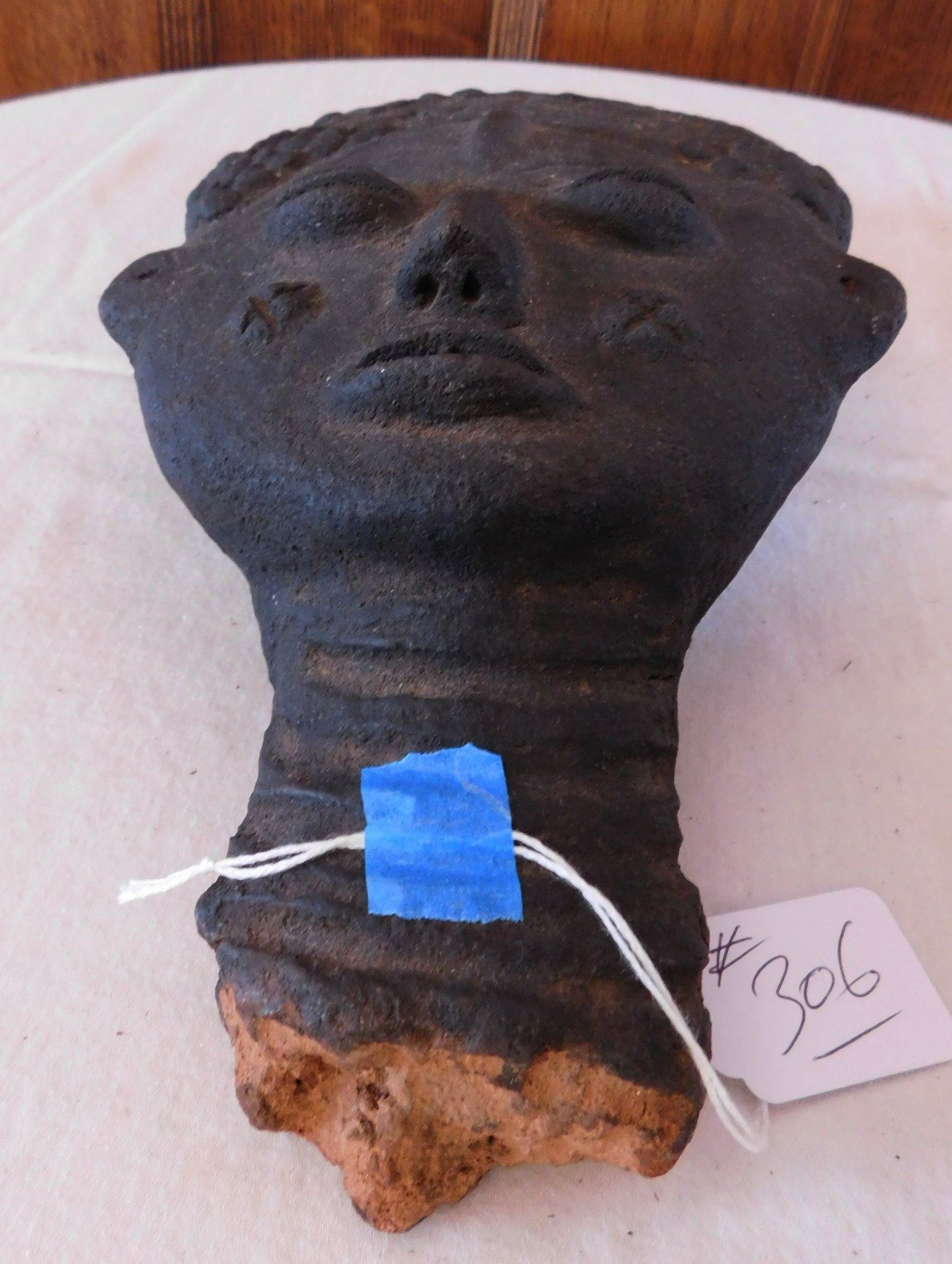 African Ashanti Clay Funerary Head, early 19th century. Made of clay and paint, the item measures 6.5" x 12" x 3". Ashanti, Ghana. Condition: Good patina, head has been detached, see images. Shipping: $32.00 w/insurance and siganture, due to size and weight.