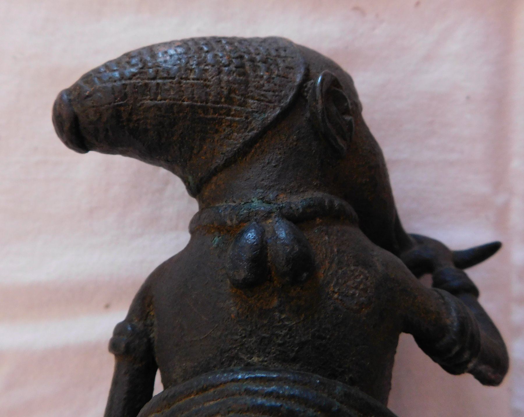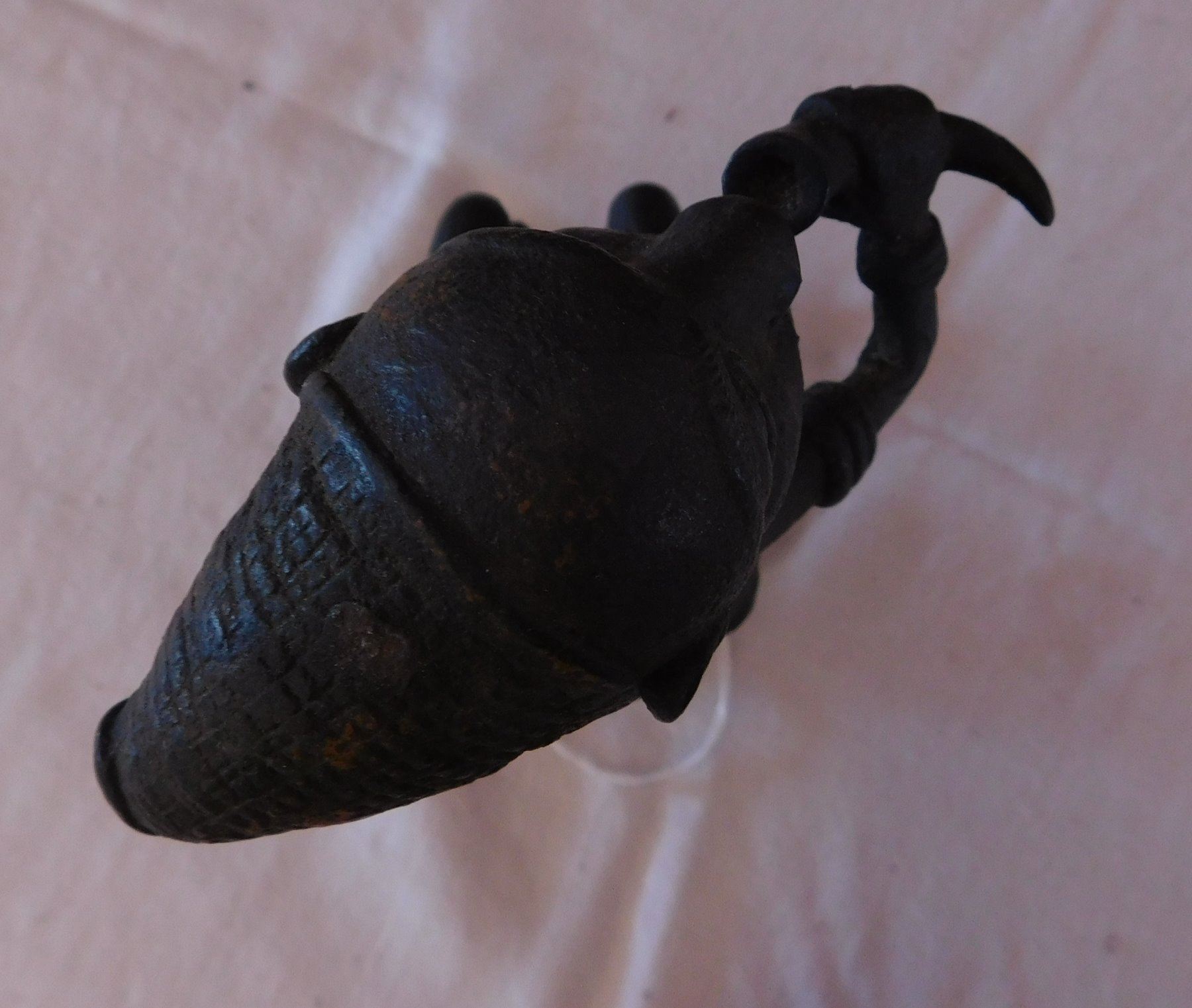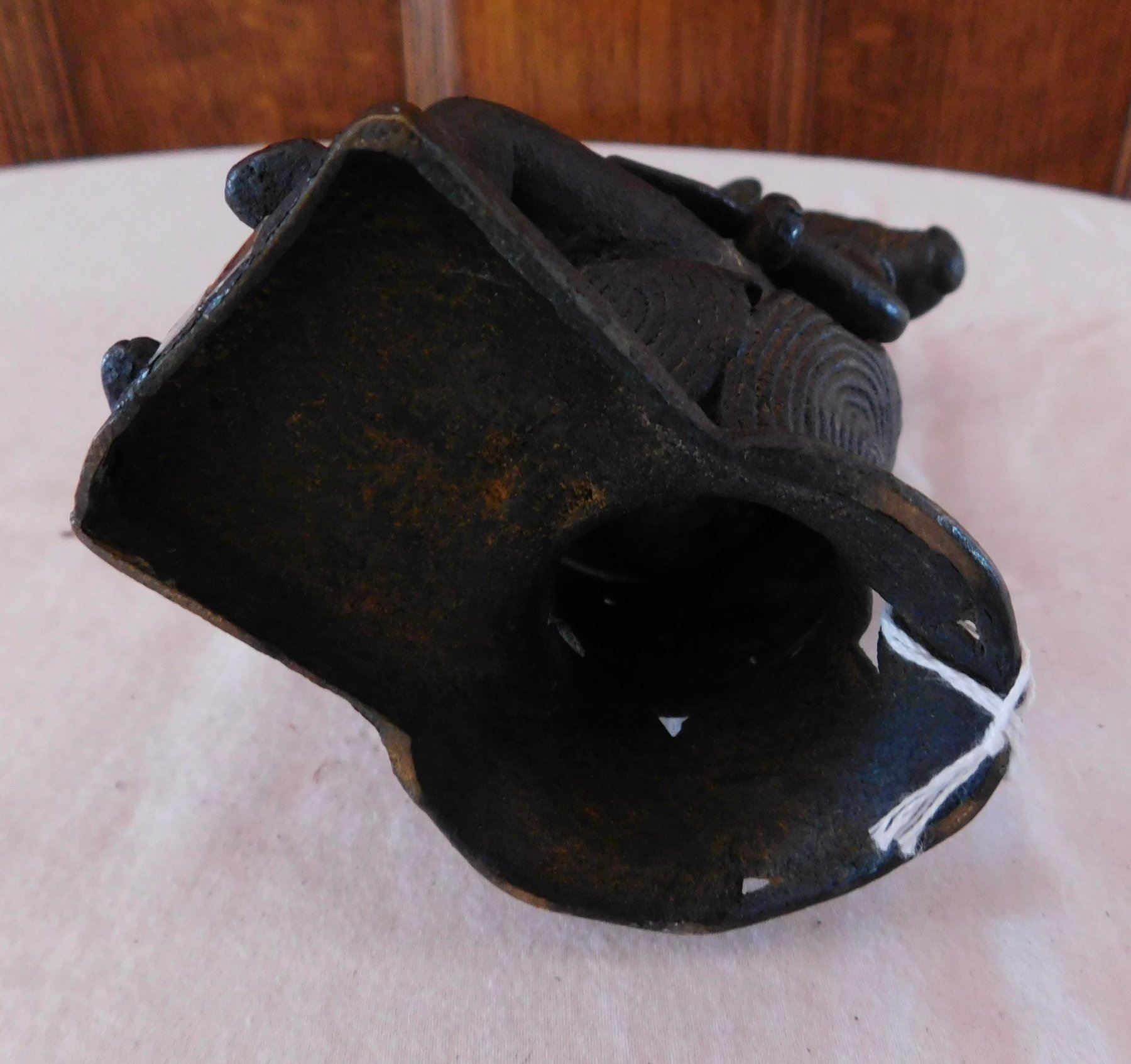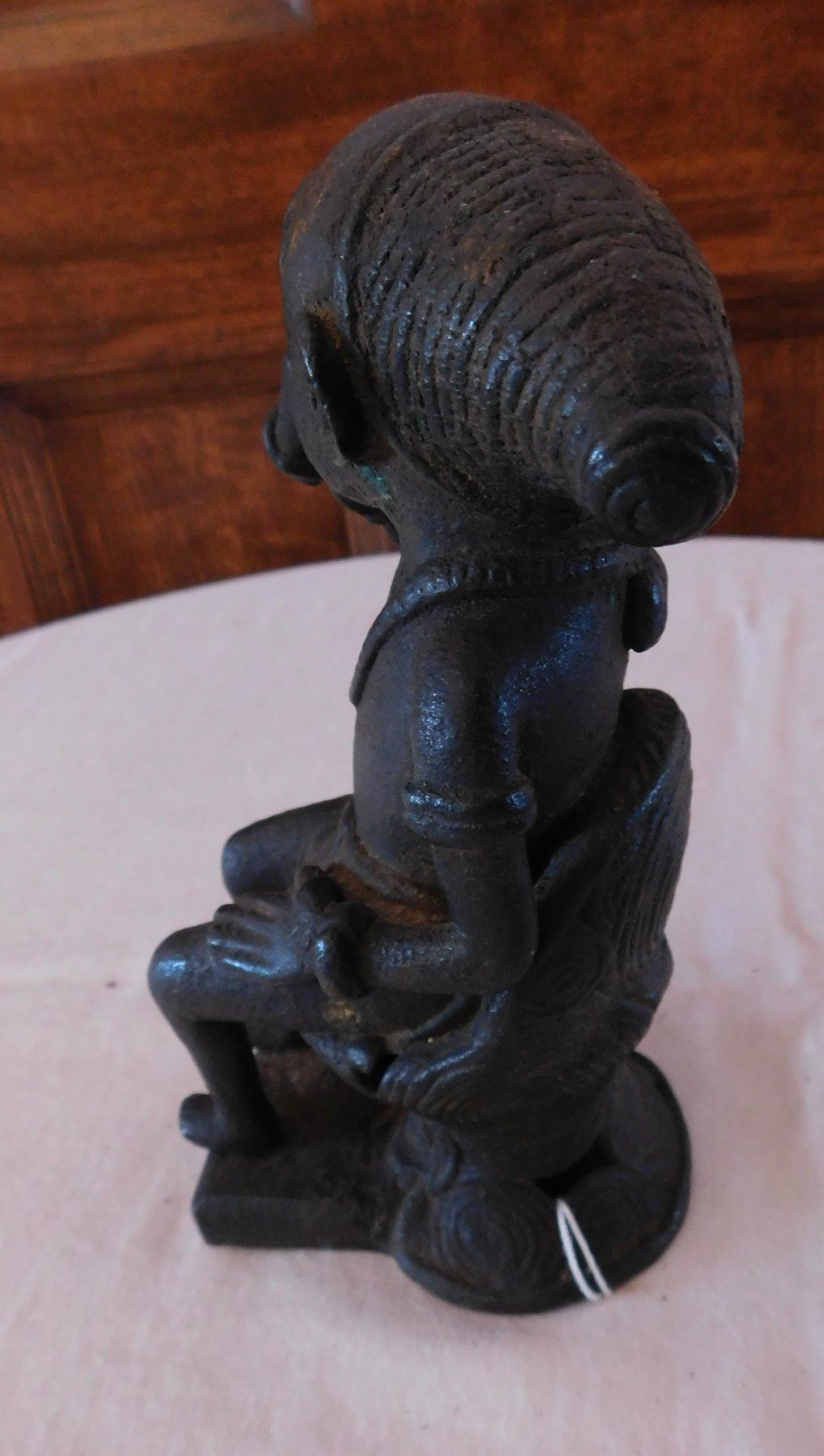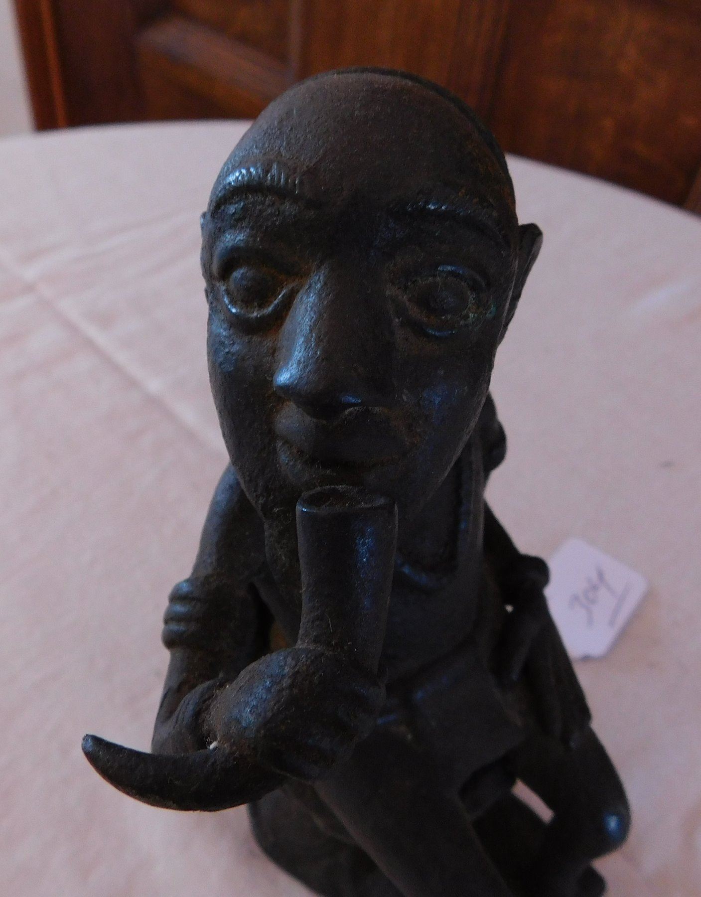 African Bamileke Bronze, late 19th century item. Made of bronze, the item measures approx. 4" x 4" x 7". Bamileke, Cameroon. Lost wax process figure drinking palm wine from horn. Condition: Great patina, see images. Shipping: $25.50 w/insurance and signature, due to value.