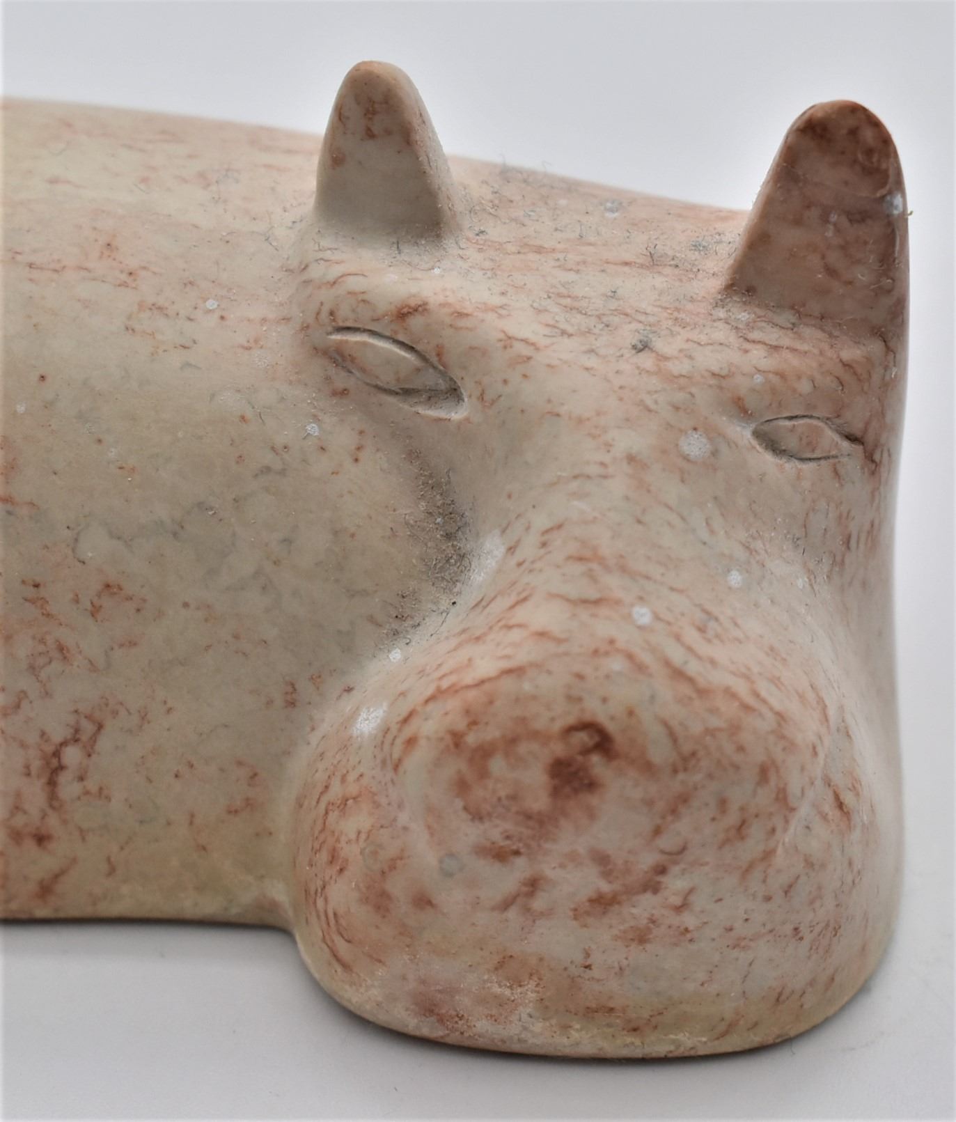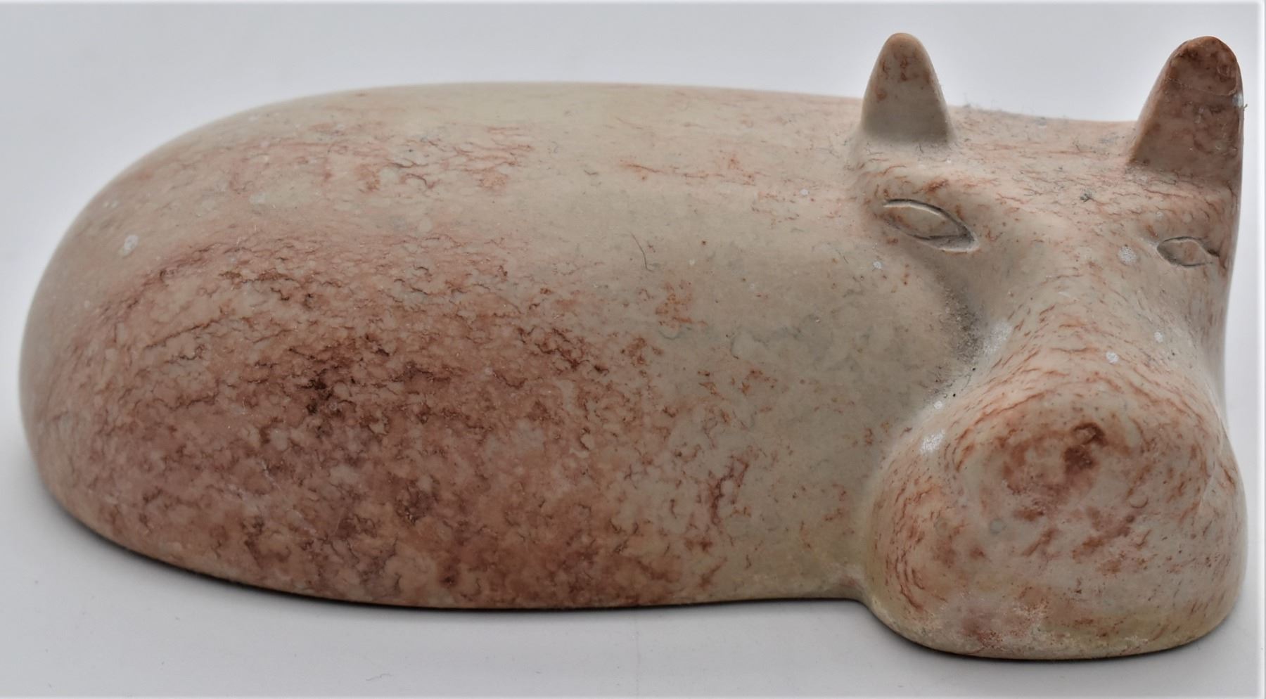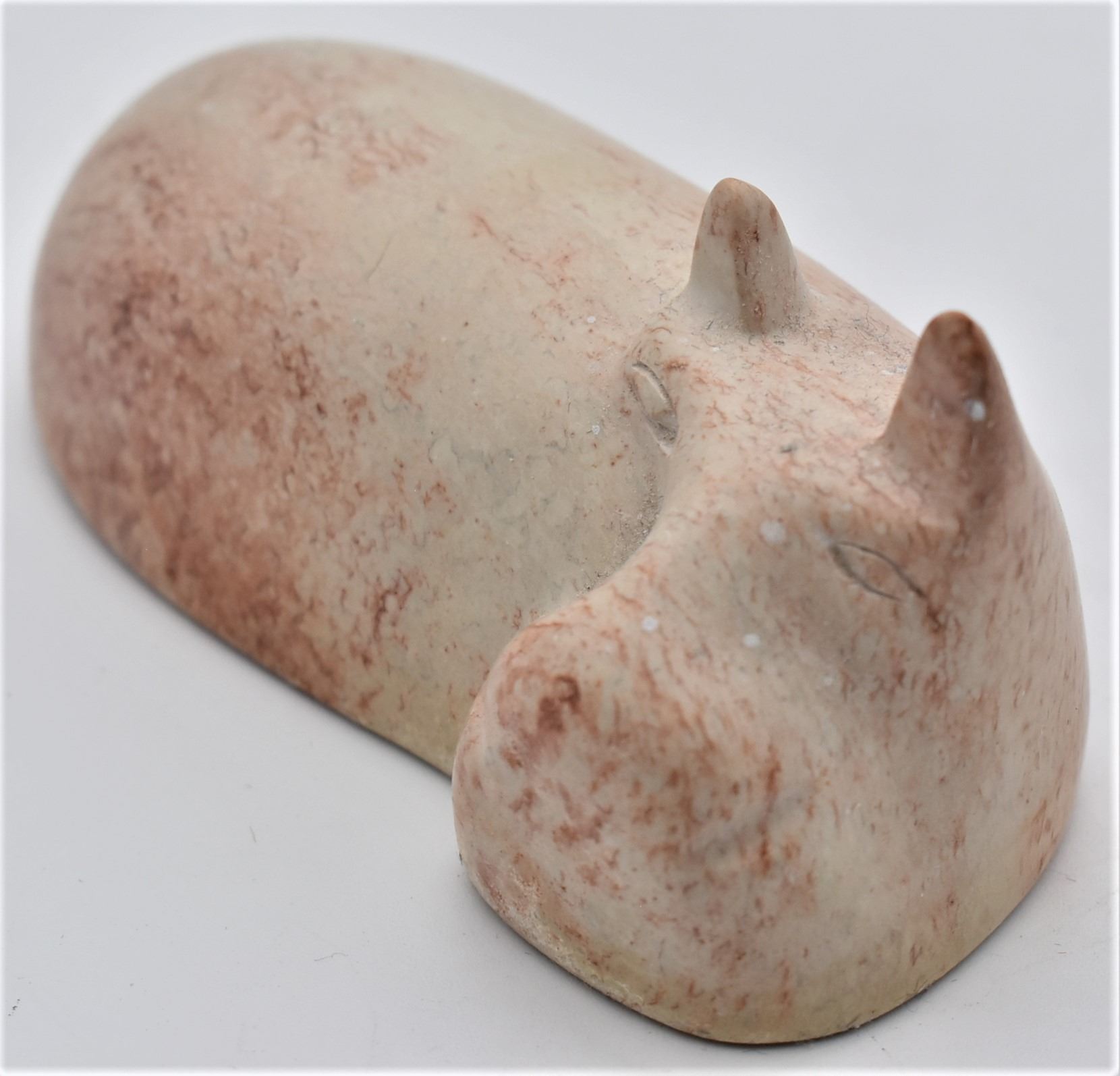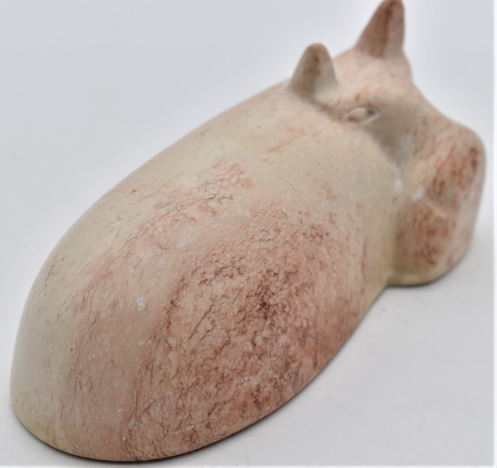 African Carved Soapstone Hippo, measures 2'' x 5'', left ear repaired