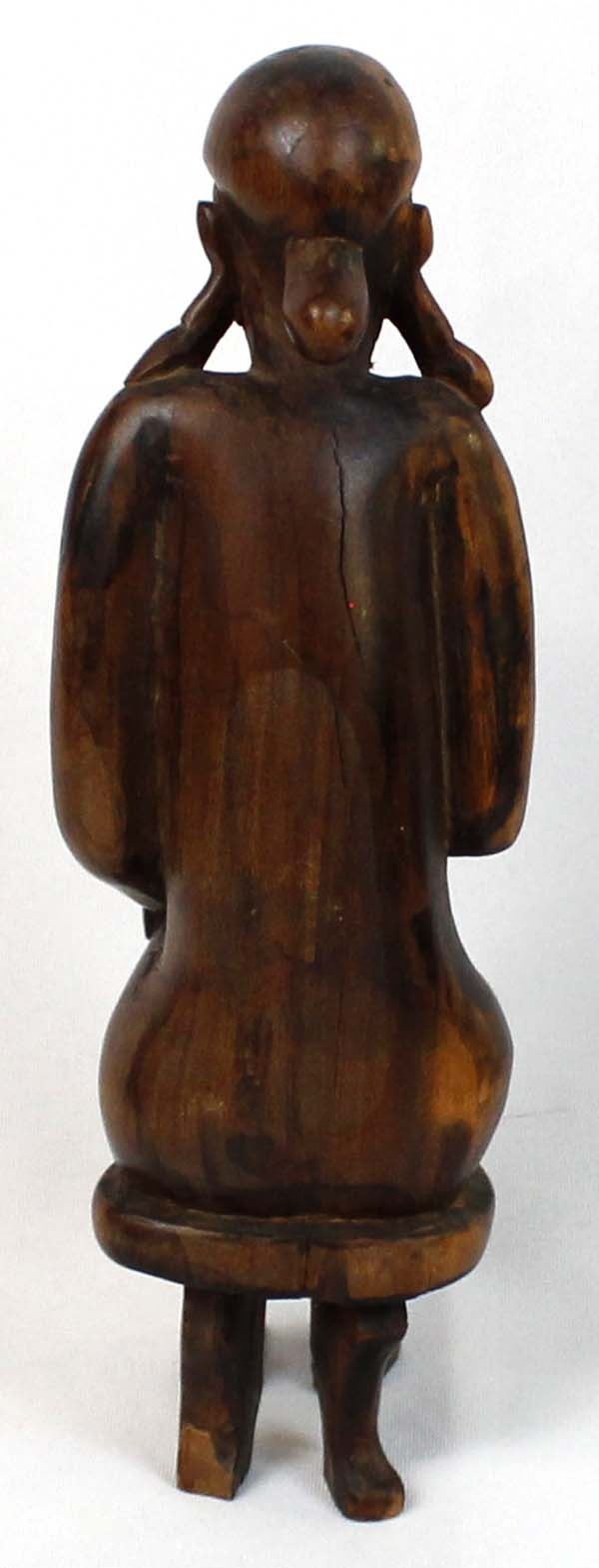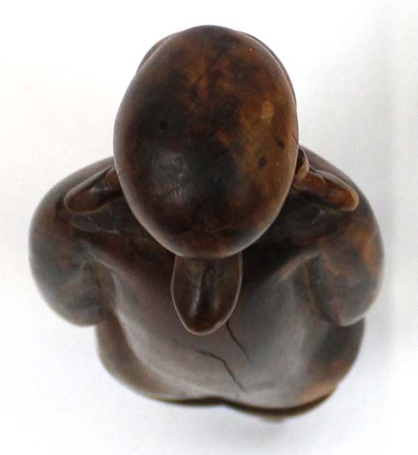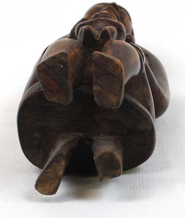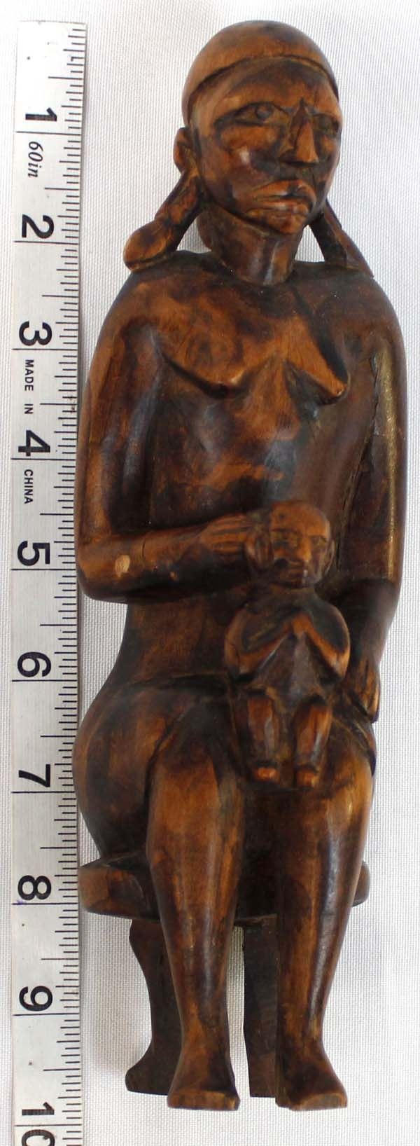 African Carved Wood Birthing Statue, depicts mother with child, measures 9'' x 3'' x 3''