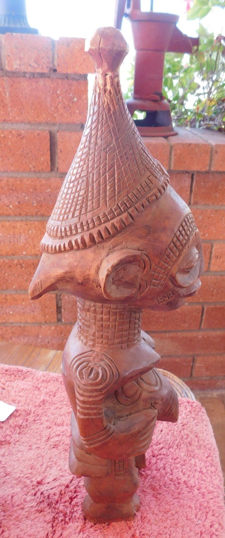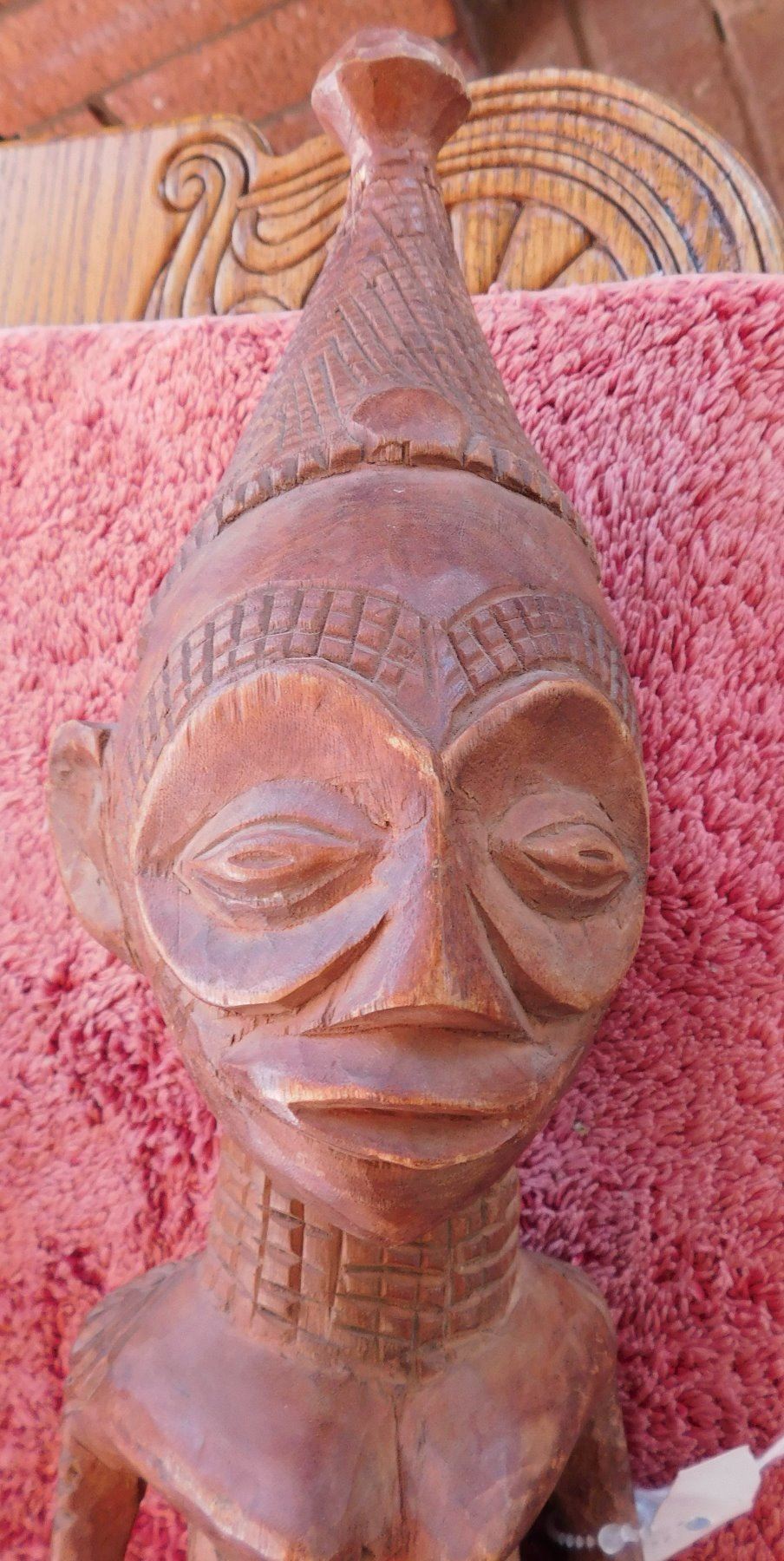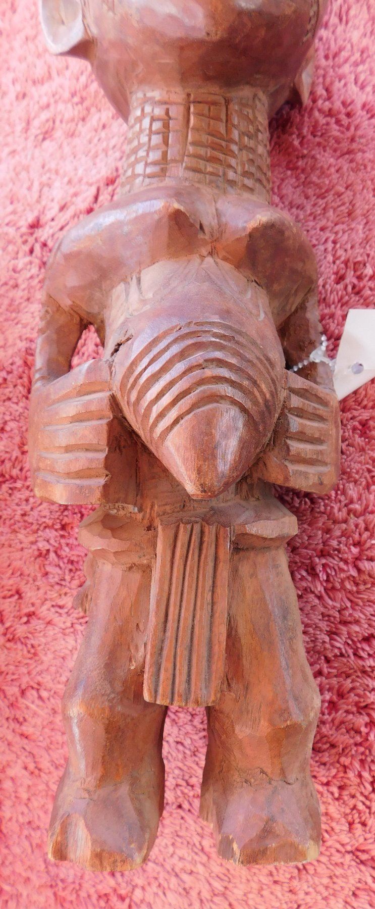 African Carving, early 20th century item. Made of wood, the item measures 4.5" x 6" x 17.5" Central Africa. Condition: Good, some wear, see images. Shipping: $30.00 w/insurance and signature, due to length.