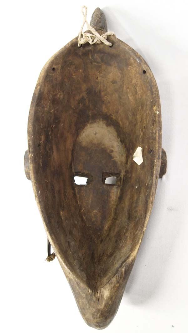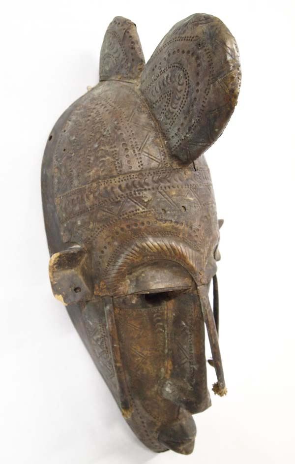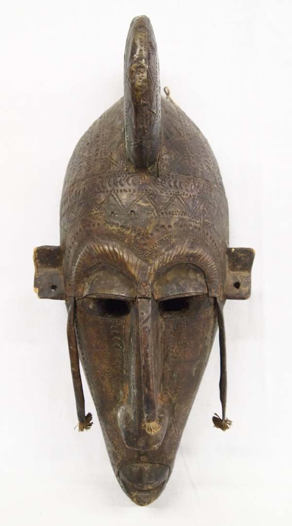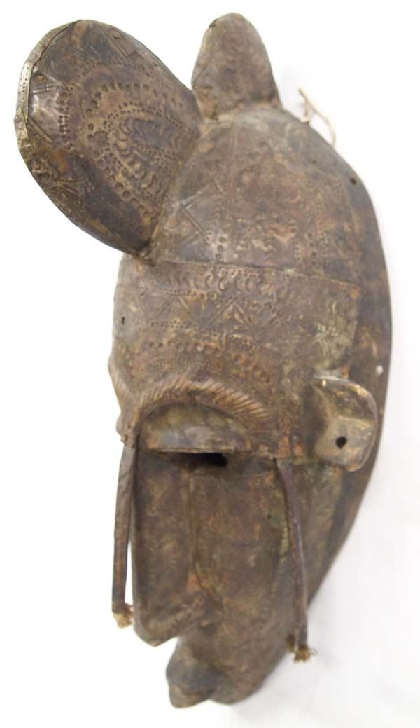 African Ceremonial Wood and Metal Mask, measures 18''L x 8''W x 6''H