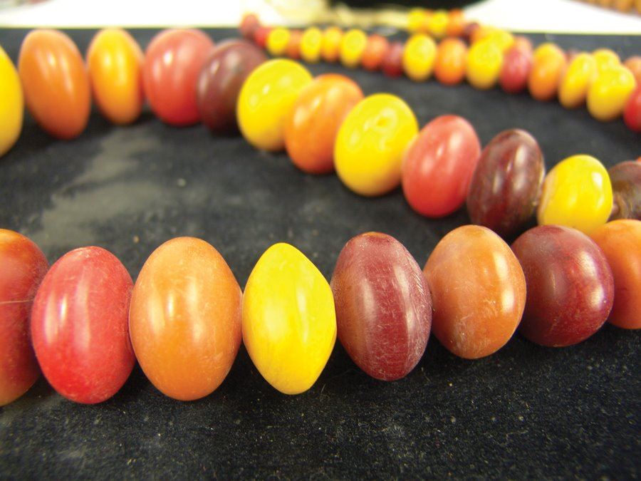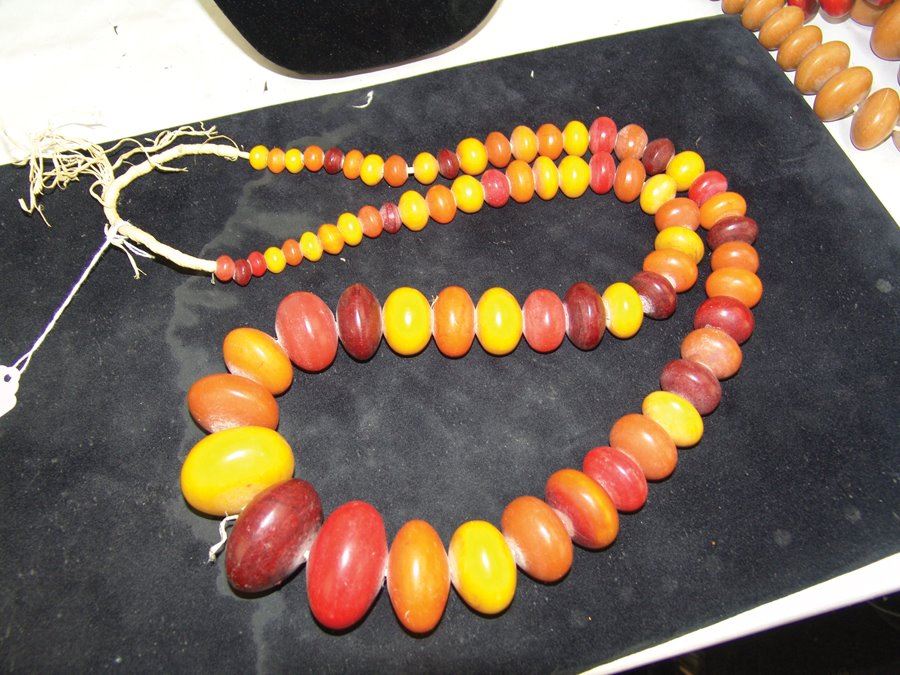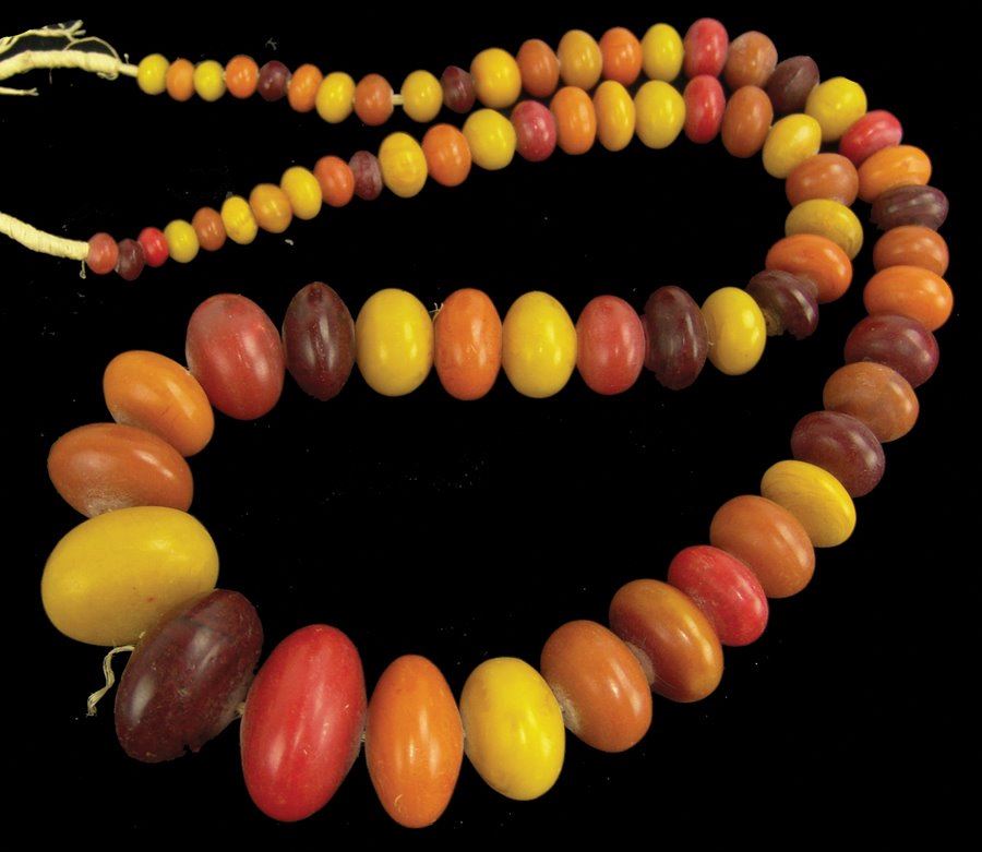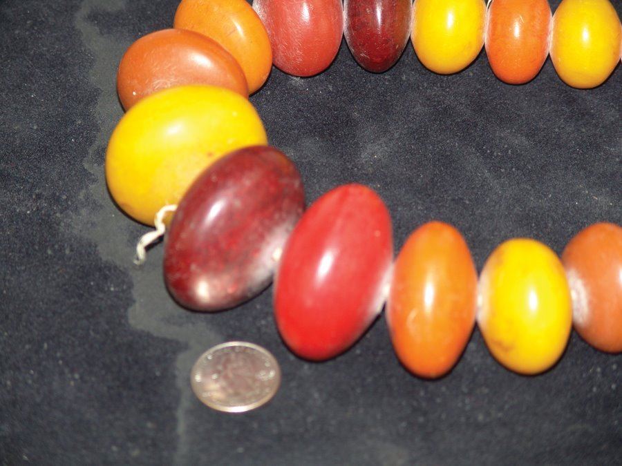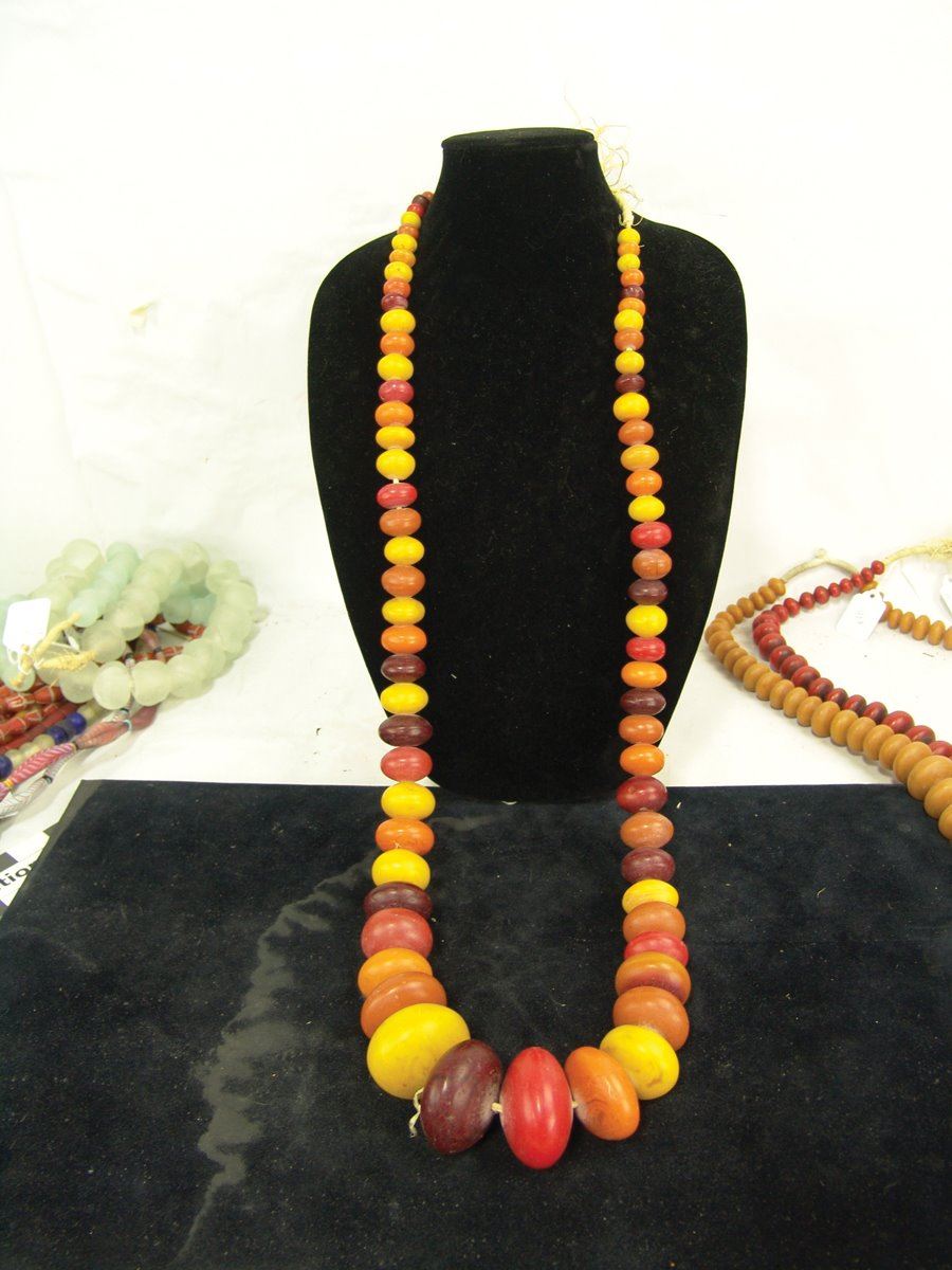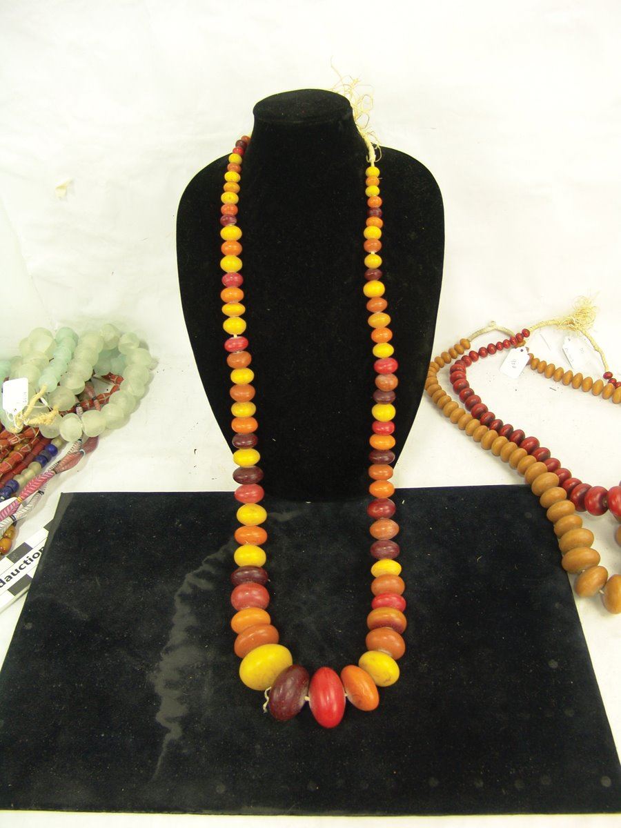An exceptional, long (52"), strand of the rarest strand of multi colored beads (the only one's we've ever had) ranging in size from 2" x 1-3/8" down to 5/8" x 3/8." These are proudly worn piled on by African women as,Early/Mid 1900s,52"
